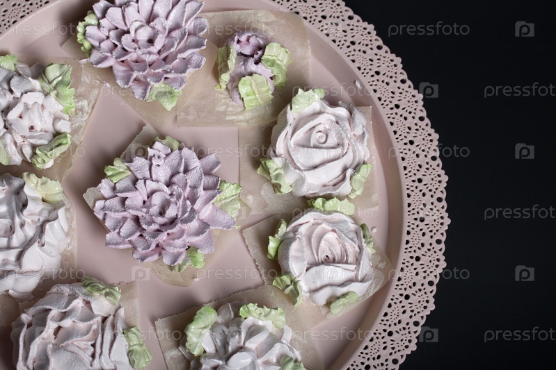 Цветы зефира на подносе. Цветочные бутоны зефира. Домашние сладости
