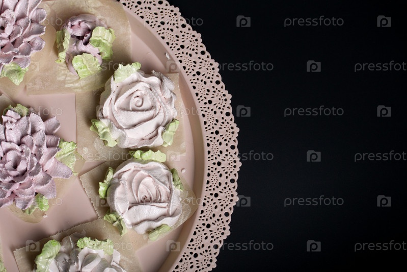 Цветы зефира на подносе. Цветочные бутоны зефира. Домашние сладости
