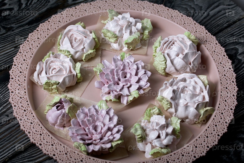 Цветы зефира на подносе. Цветочные бутоны зефира. Домашние сладости