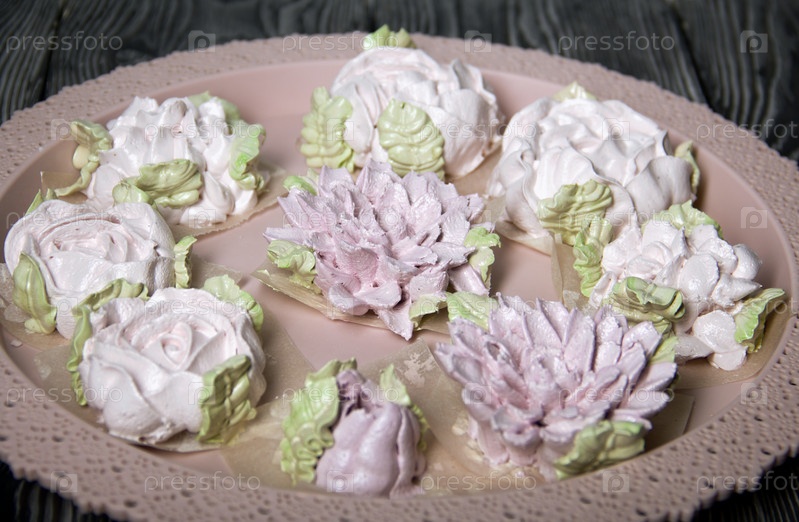 Цветы зефира на подносе. Цветочные бутоны зефира. Домашние сладости