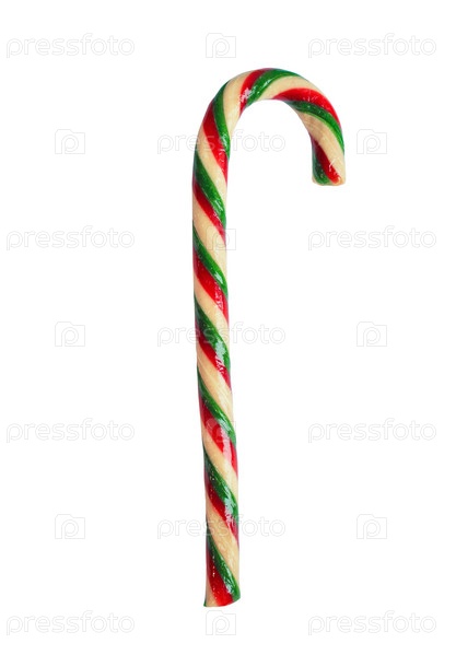 Новогодняя рождественская полосатая карамель трость изолированная на белом фоне