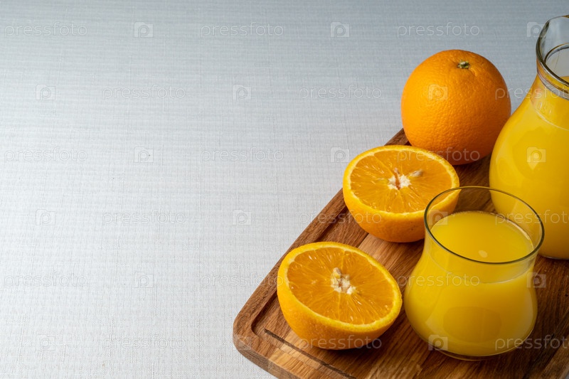 Свежевыжатый апельсиновый сок, нарезанный апельсин