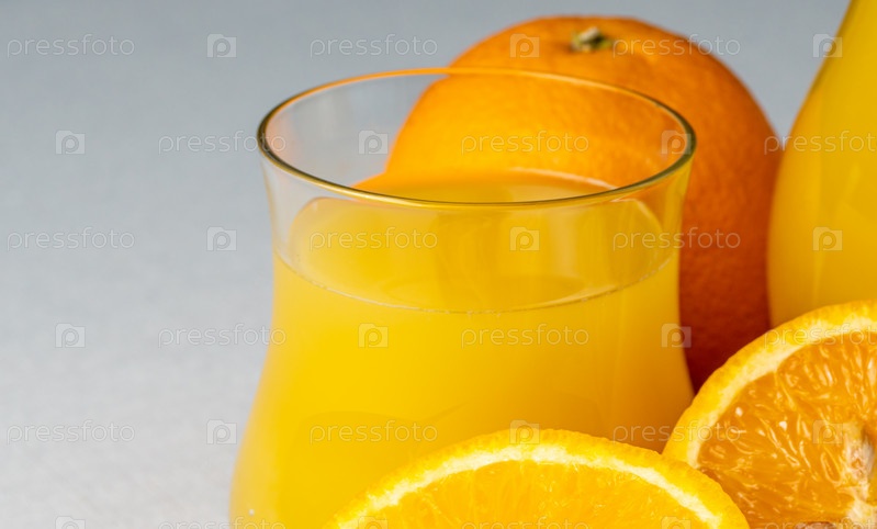 Свежевыжатый апельсиновый сок, нарезанный апельсин