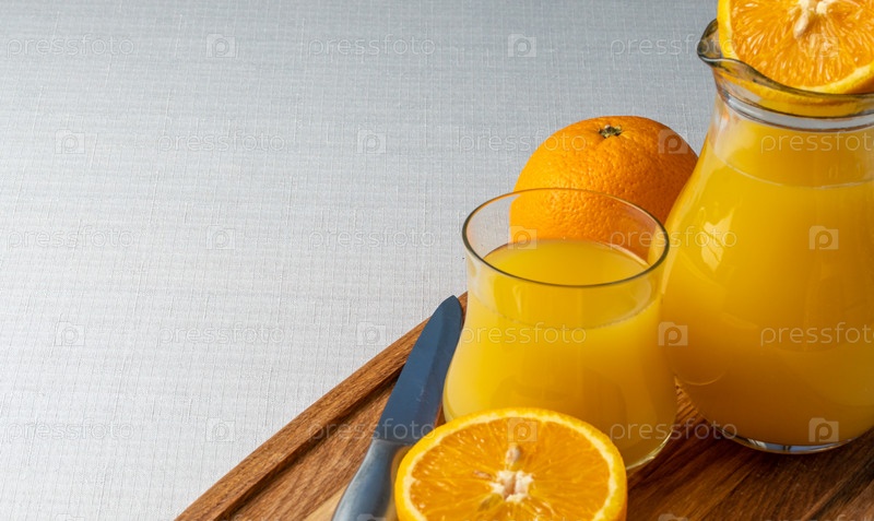 Свежевыжатый апельсиновый сок, нарезанный апельсин