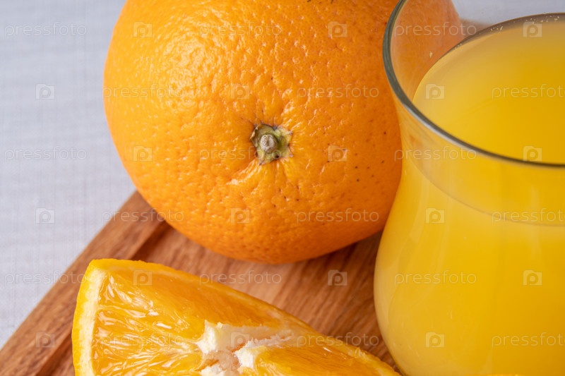 Свежевыжатый апельсиновый сок, нарезанный апельсин