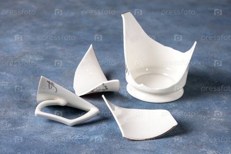 Фрагменты белой хрупкой фарфоровой чашки