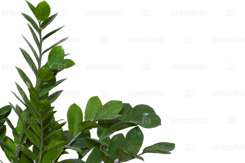 Зеленые листья комнатного растения на белом фоне