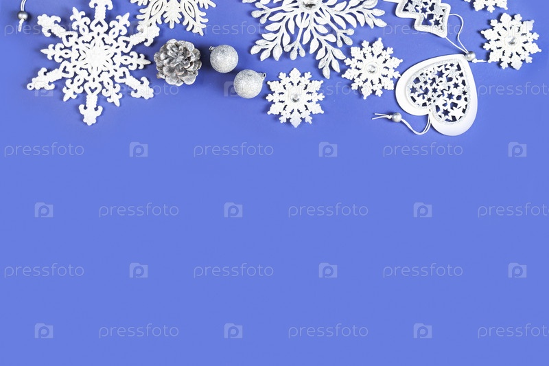 Рождественская композиция. Рождественские украшения на синем фоне
