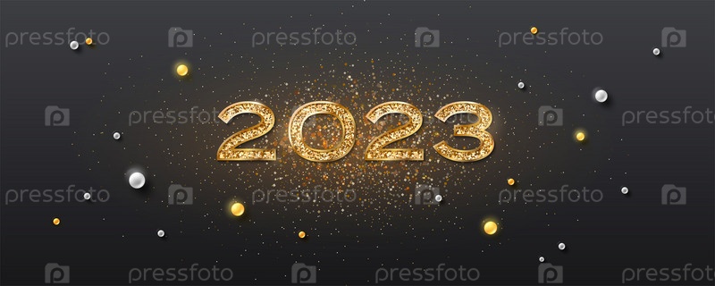 Реалистичный сверкающий номер 2023. Украшенный золотой пылью и жемчугом баннер