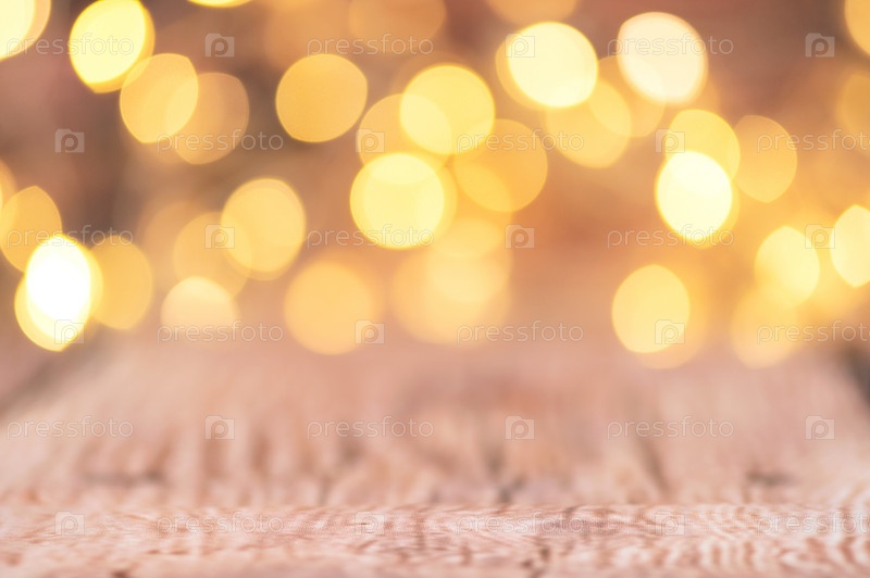 Размытый вид на фоне рождественских огней в теплом свете, сфокусируйтесь на полу