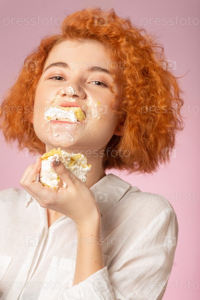 Девушка ест десерт
