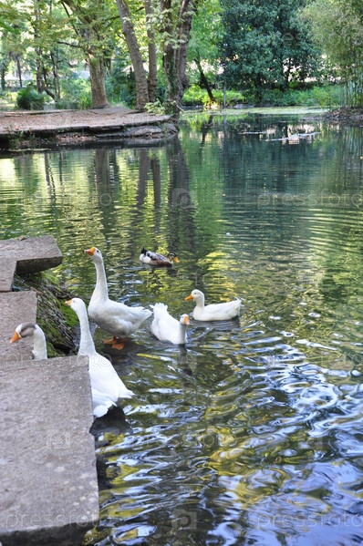 Гуси и лебеди. Водные птицы. Птицы на пруду. Белые птицы. Парк с озером. Парк летом