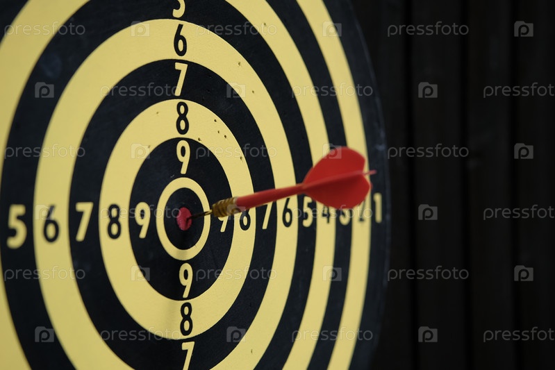 Крупный план дартс с расфокусированным красным дротиком в центре. Выборочный фокус