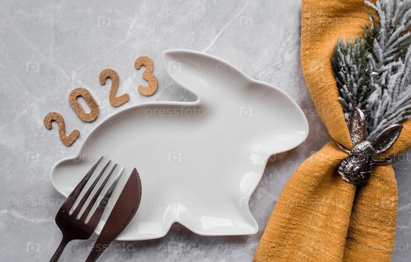 С Новым 2023 годом. Рождественская открытка, баннер с лошадкой-качалкой, елки, подарки и красивое боке на заднем плане. Концепция домашнего зимнего отдыха, тепла и уюта