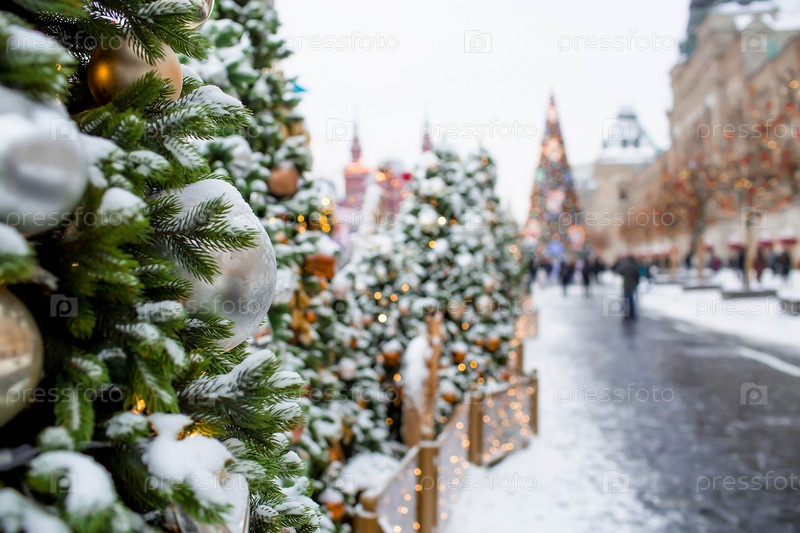 Новогоднее украшение улиц. Красивые праздничные пейзажи в городе. Украшенные елки. Новогодние зимние каникулы 2023