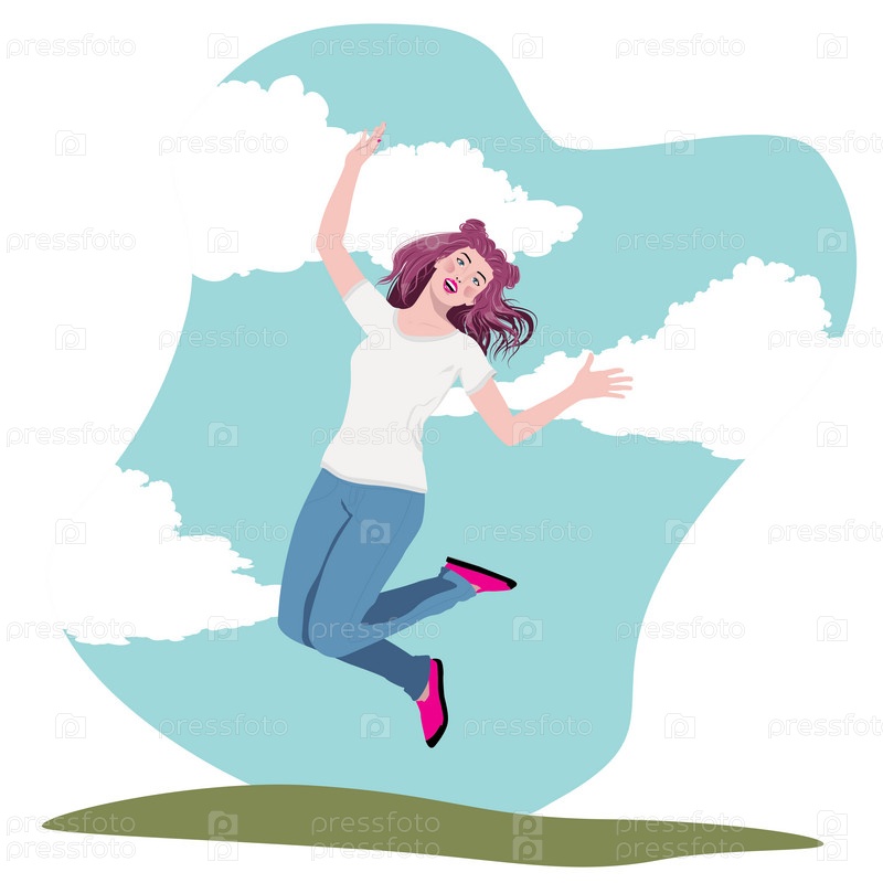 Девушка в белой рубашке прыгает в небо
