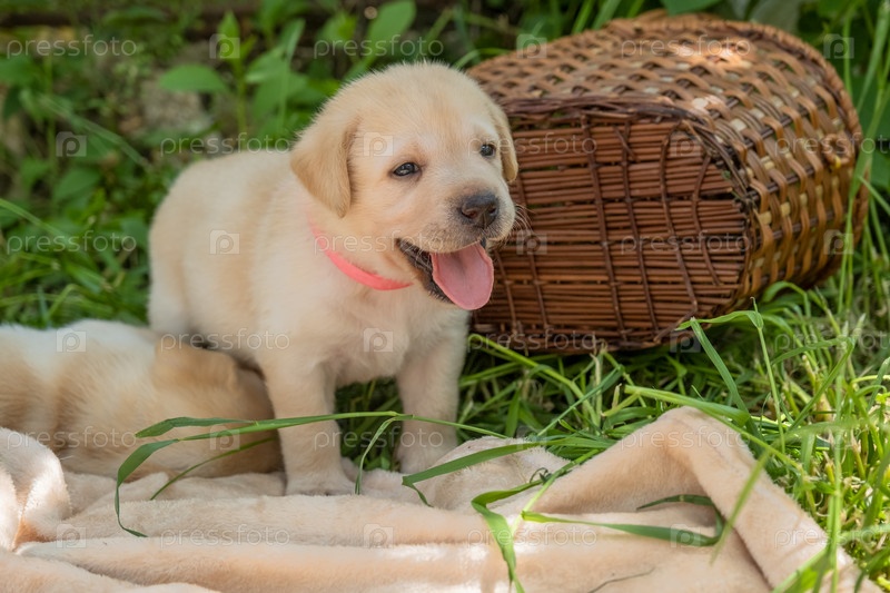 Щенок лабрадора в зеленой траве