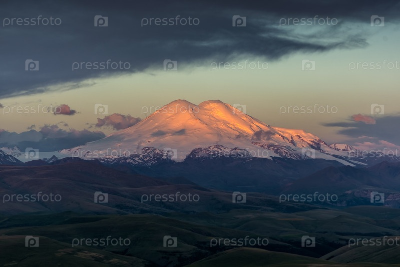 Эльбрус на рассвете в горах Кавказа
