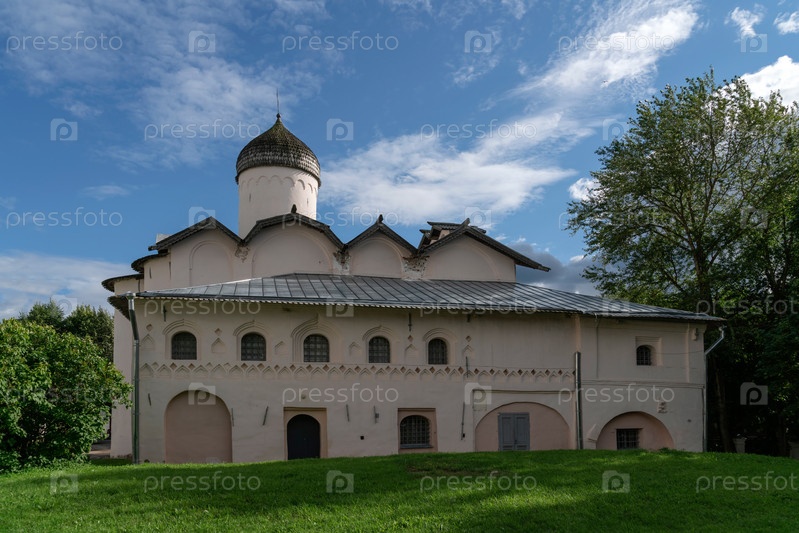 Вид на церковь жен-мироносиц ранним летним утром, Великий Новгород, Новгородская область, Россия