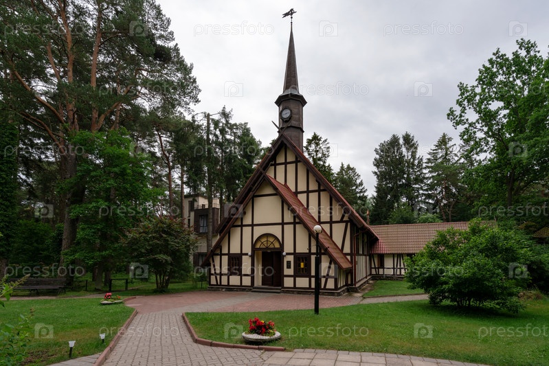 Вид на Органный зал Макарова (бывшая католическая церковь Раушен) в летний день, Светлогорск, Калининградская область, Россия