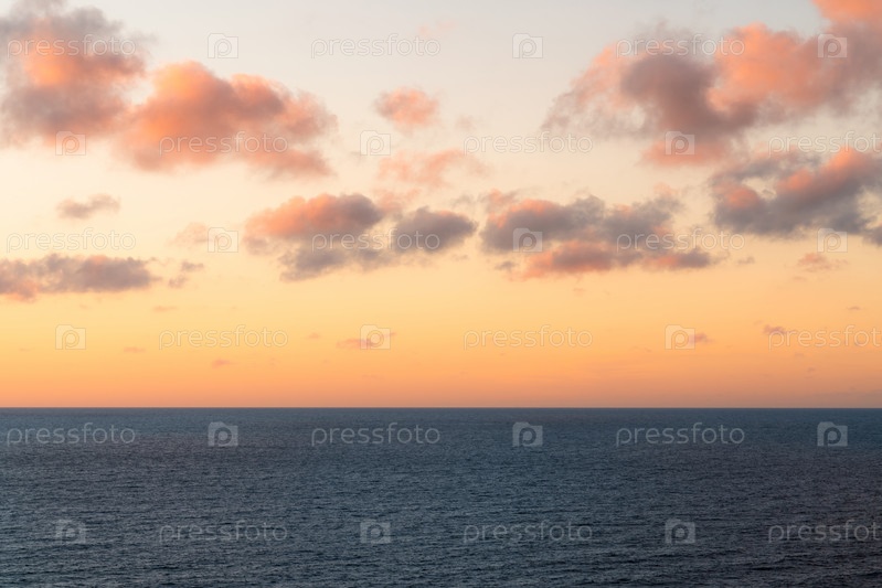 Розовое закатное небо с облаками над Балтийским морем, Светлогорск, Калининградская область, Россия