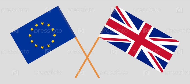 Скрещенные флаги Европейского Союза и Соединенного Королевства. Официальные цвета. Правильная пропорция
