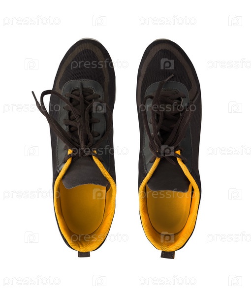 Вид сверху на пару тренировочных кроссовок на белом фоне