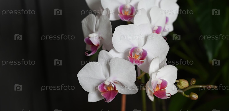 Крупный план белых орхидей (фаленопсис) на темном фоне