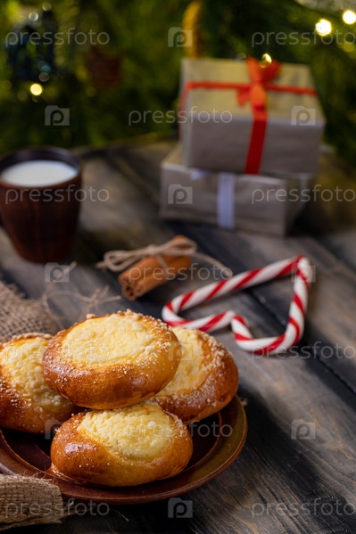 Вкусный домашний пирог с молоком на деревянном столе