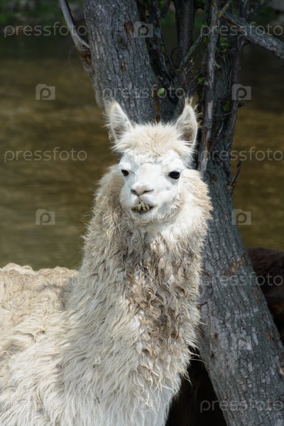 Портрет ламы Ламы гламы, смотрящей в камеру