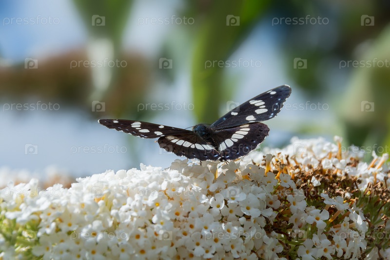 Черно-белая бабочка Limenitis reducta. крупный план