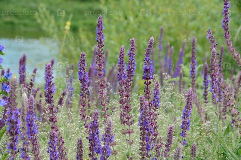 Куст фиолетоцветковой балканской шалфеи Salvia nemorosa