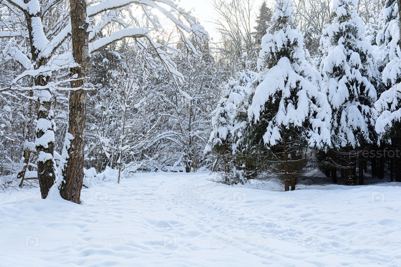 Зимняя тропа через заснеженный лес