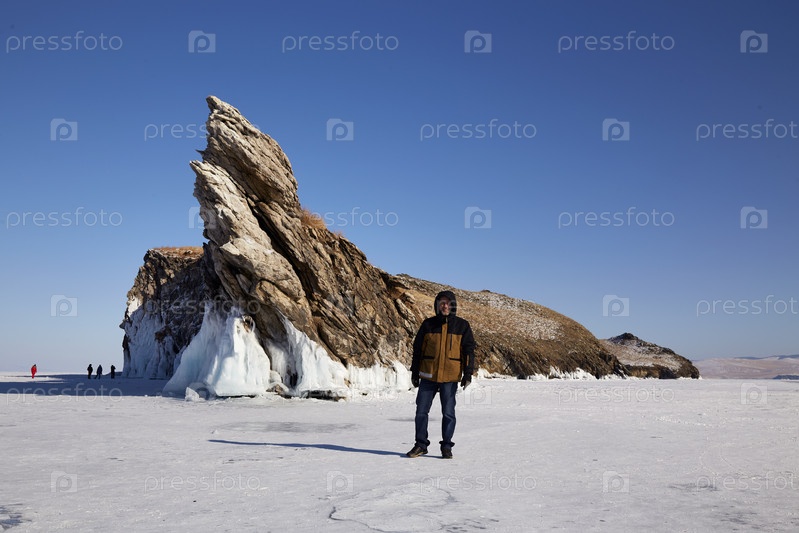 Мужчина-путешественник стоит у Скалы Дракона на острове Огой