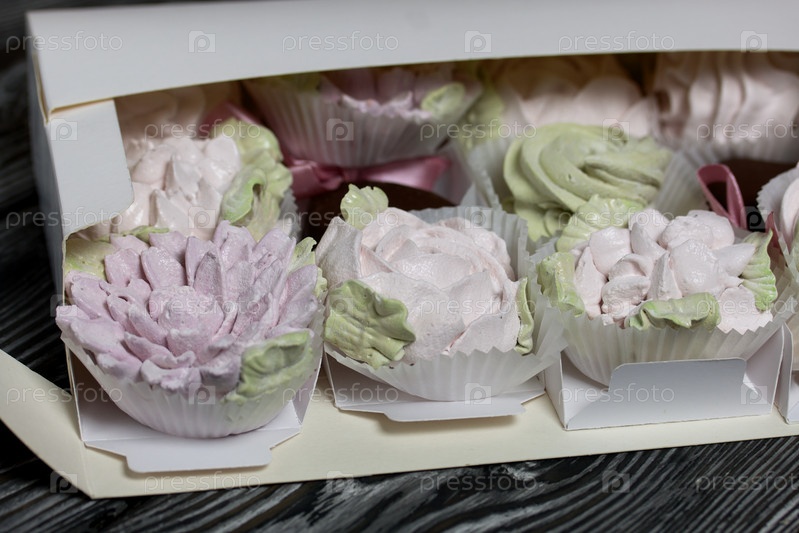 Домашний зефир в подарочной упаковке. Зефир цветы. С зефиром в шоколаде. На черных сосновых досках. Взято сверху