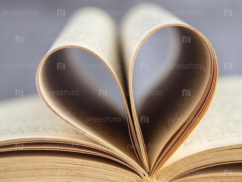 Страницы книги в форме сердца макросъемки. Сердце из книжных страниц на размытом фоне