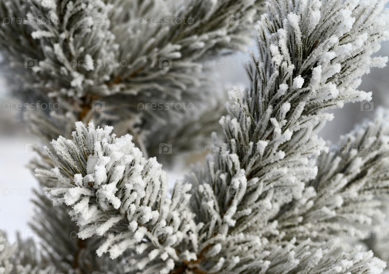 Зимний лес с инеем на деревьях в солнечный день, дорога покрыта снегом