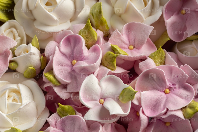 Зефирный букет цветов в подарочной коробке крупным планом, праздничное настроение, День святого Валентина, Международный женский день
