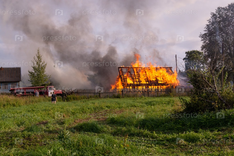 Пожар в деревне. Горящие деревянные дома в селе Ранцево Тверской области