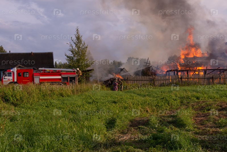 Пожар в деревне. Горящие деревянные дома в селе Ранцево Тверской области