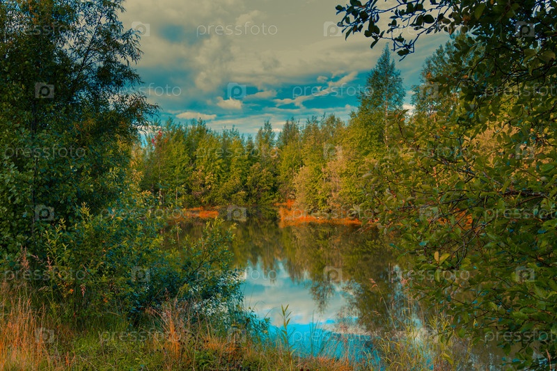 Ясный осенний день на лесном озере