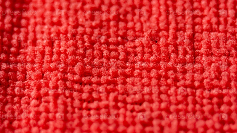 Ворсинки тряпки из микрофибры красного цвета для уборки, макросъемка