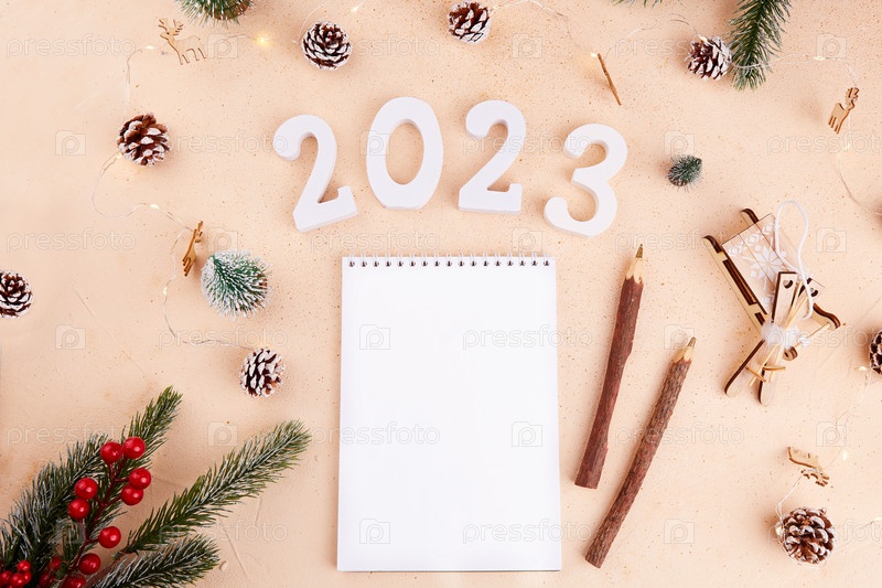 Рождественская открытка. Блокнот, чистый лист бумаги для списка дел
