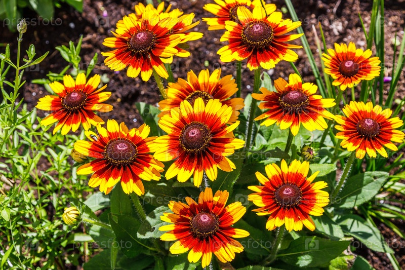 Рудбекия Хирта, обычно называемая черноглазой Сьюзен, цветет в летнем саду