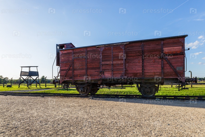 Одинокая кабина поезда в концентрационном лагере Освенцим-Биркенау. Освенцим, Польша, 17 июля 2022 г