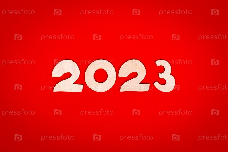 Креативный фон номеров нового 2023 года. Открытка, поздравление, баннер. Фигуры из фанеры