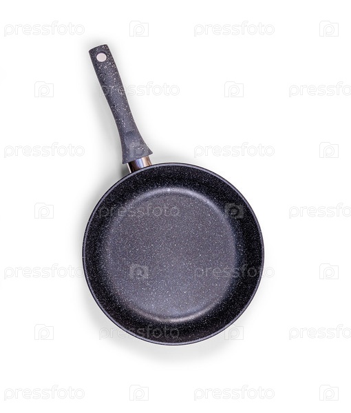 Черная сковорода с антипригарным покрытием на белом фоне