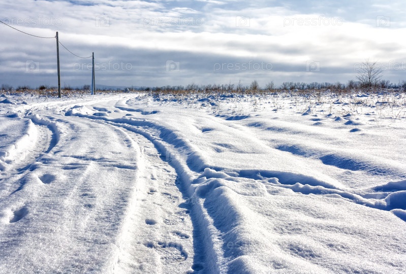 Зимняя снежная сельская полевая дорога