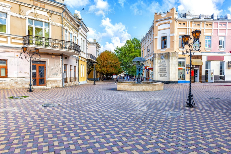 Городской сквер в Феодосии с фонтаном любви