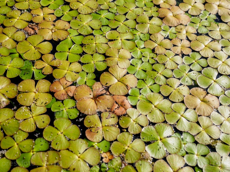 Зеленый естественный фон из личинки (Lemnoideae) в пруду в солнечный день